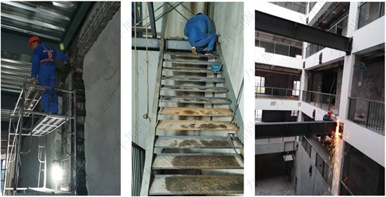 4.寧波新材料創(chuàng)新中心前程家居股份有限公司改造加固工程:新增鋼樓層、鋼樓梯,柱子包鋼、樓板靜